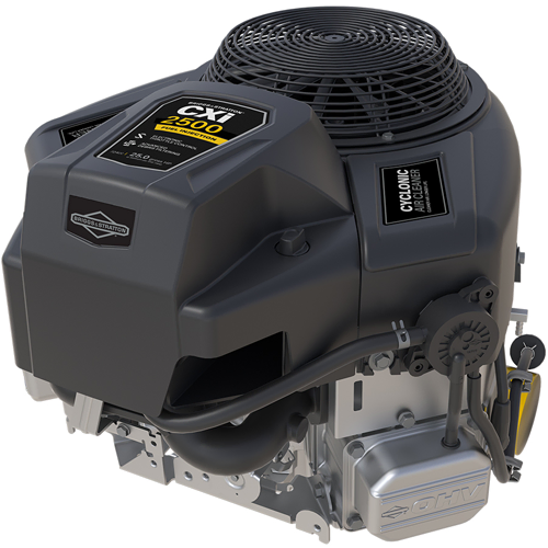 The CXi Series V-Twin engines are engineered for high-debris applications, featuring a patented 5-Step Debris Management System and cyclonic air filter for extended engine life. With options like the Oil Xtend™ System, High Inertia Flywheel, and EFI/ETC technology, these engines offer enhanced durability, reduced vibration, smoother power delivery, and improved fuel efficiency, making them ideal for the toughest conditions and terrains.